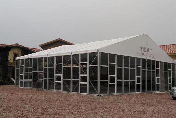 玻璃篷房是目前市場(chǎng)上比較多見的一款篷房產(chǎn)品,玻璃棚房因?yàn)槠渫庑为?dú)特高端而深受廣大客戶青睞。宏泰篷房廠家所生產(chǎn)的透明玻璃篷房具有外觀大氣、透光性能強(qiáng)等優(yōu)勢(shì)特點(diǎn),尤其適合一些高端展會(huì)、商業(yè)活動(dòng)、婚禮或會(huì)議等活動(dòng)。